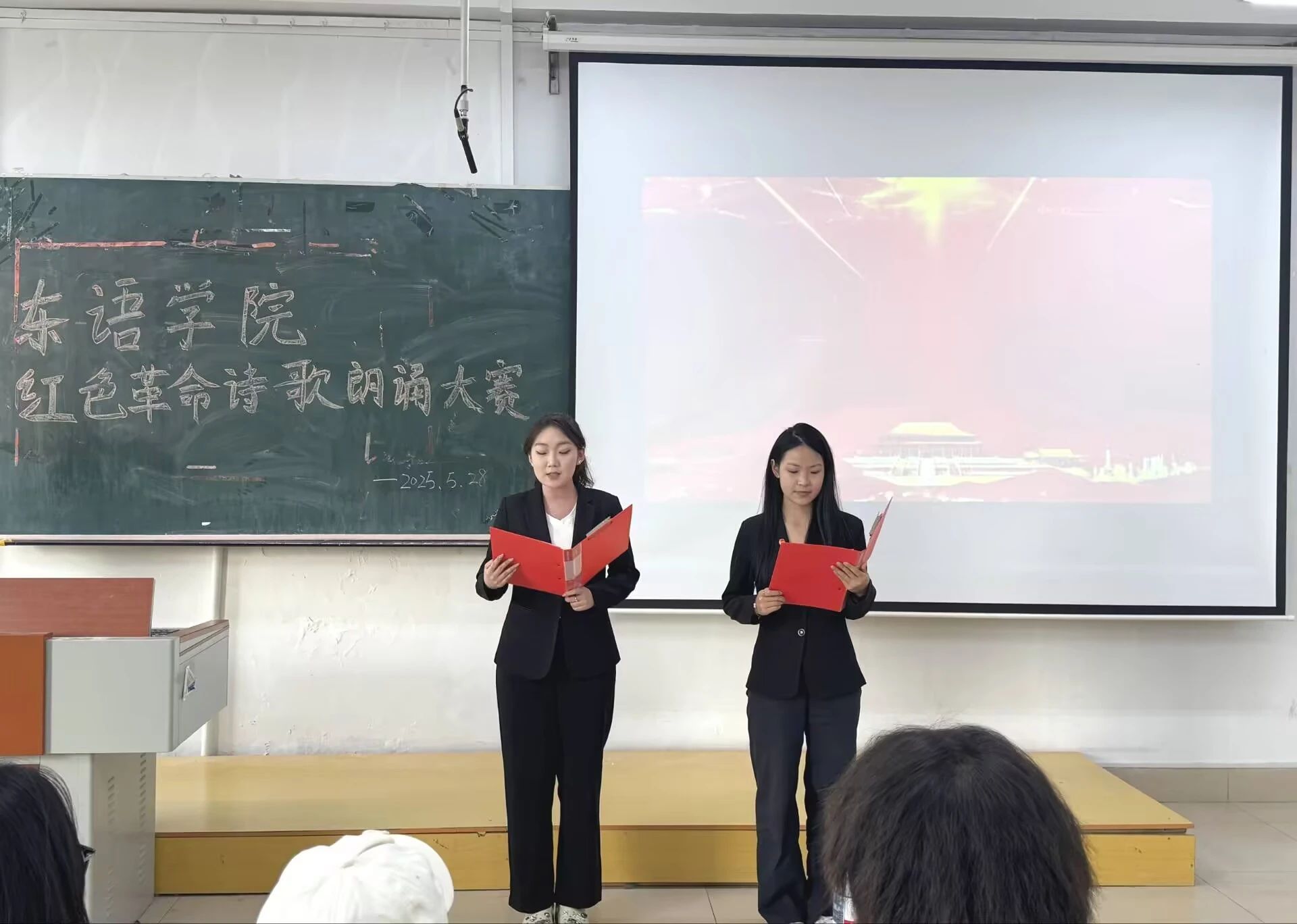 “红色革命诗朗诵”活动在社科楼452教室举行。
